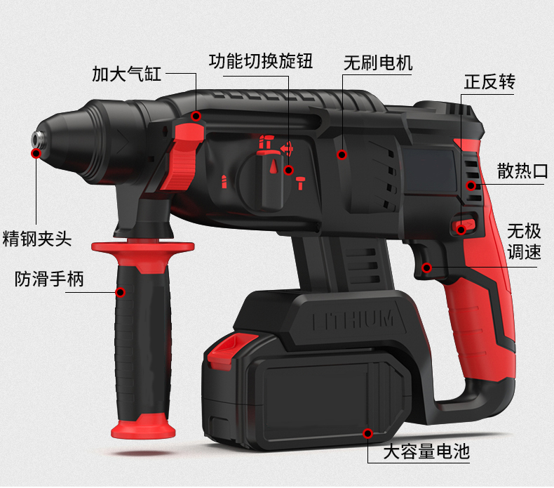 加大錘擊氣缸替代傳統插電電錘,精密大口徑氣缸,真空淬火,牢固耐用強勁沖擊力,效率更高