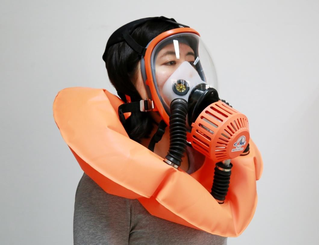 產品采用了航天空氣再生技術、空氣可控緩釋技術、一體化熱控技術,實現了小型化、便攜式、內循環空氣再生,可長時間提供安全、高效、舒適的呼吸防護,核心指標優于國家標準及其他類產品約 50% 以上。該產品有效解決了現有過濾式逃生面罩“安全性能極差”、消防呼吸器“使用復雜”“效費比低”等痛點問題,具備消防火場救援、公眾佩戴逃生自救等多重應急救援功效。