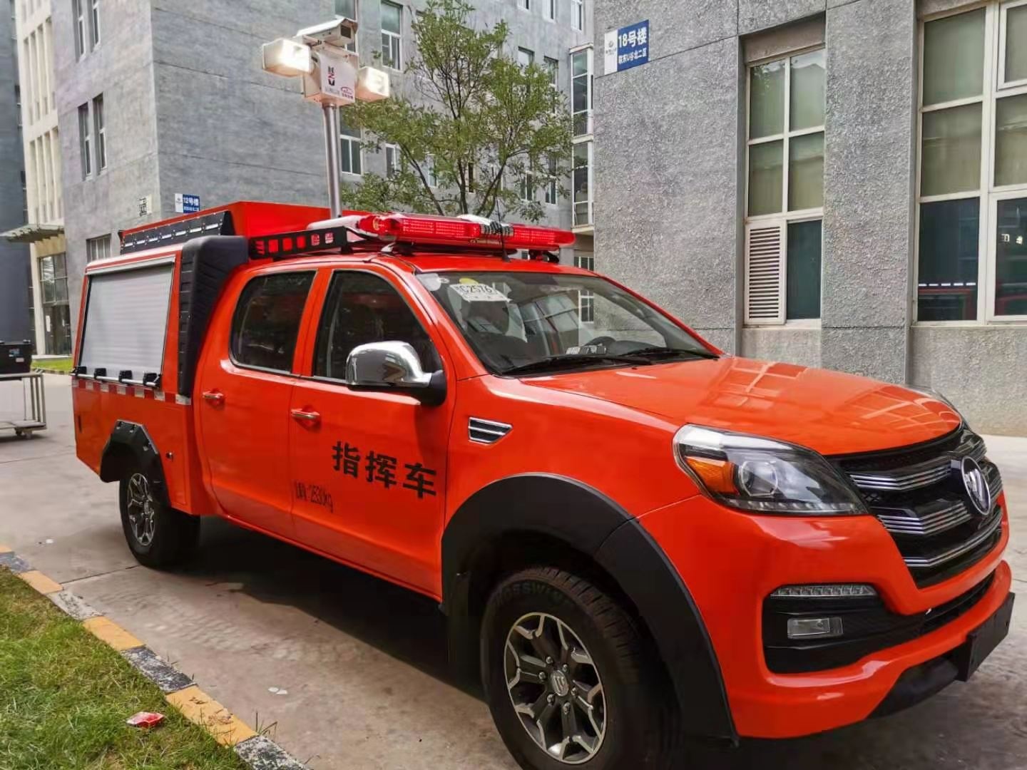 專門為特種機器人量身定做的一款機器人運輸車,由皮卡車改裝,區別于傳統意義上大型運輸車,體積更小,動力更足。車廂設計有升降照明系統,解決了救援現場能見度低的問題,1.2-1.8米升降高度,可滿足不同照明需求。車體頂部裝有4G圖像傳輸系統,可將現場情況實時傳輸到指揮部,有利于指揮現場調度。配有一體化機器人裝運梯,最大承壓≥600Kg。后箱四周配有一圈小型照明系統,可用于晚間或光線昏暗等環境。后箱設計有獨立儲物架,可放置機器人配套設備。兩側卷閘窗設計方便拿用。
