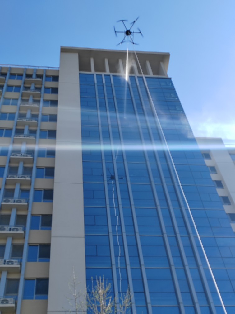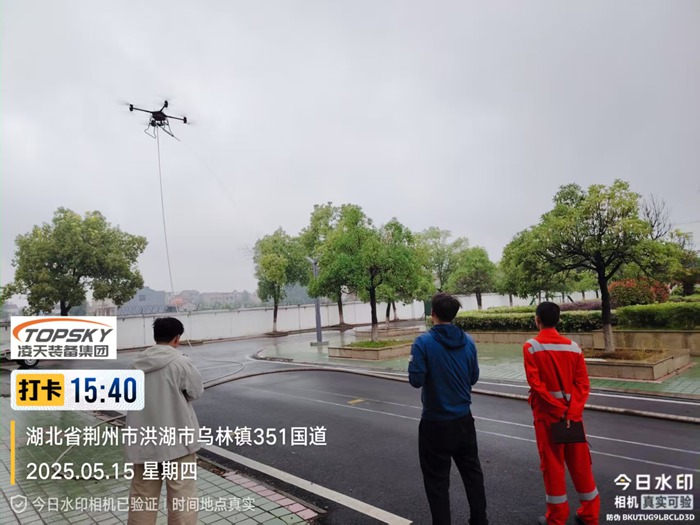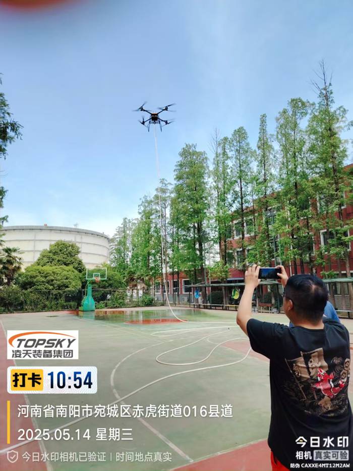 LT-F50-MH陸空兩棲高層建筑系留滅火無人機,是我公司針對城市高層消防需要而最新自行設計的,該無人機通過高空噴水滅火作業,充分實現了操作人員與火災現場遠距離分隔的優點,能很好地保護滅火人員的人身安全。該無人機具有結構新穎,性能穩定可靠,操作靈活,維修方便、噴水距離遠、流量大等特點,同時,該無人機具備陸空兩棲功能,可以在地面行駛。該無人機可裝載在消防車上,能快速啟動升空,通過特制高壓水帶與消防車水罐連接,消防車水罐內部高效泡沫/水基滅火劑輸送到無人機平臺,在水槍噴口水平噴射出去,達到滅火的效果。