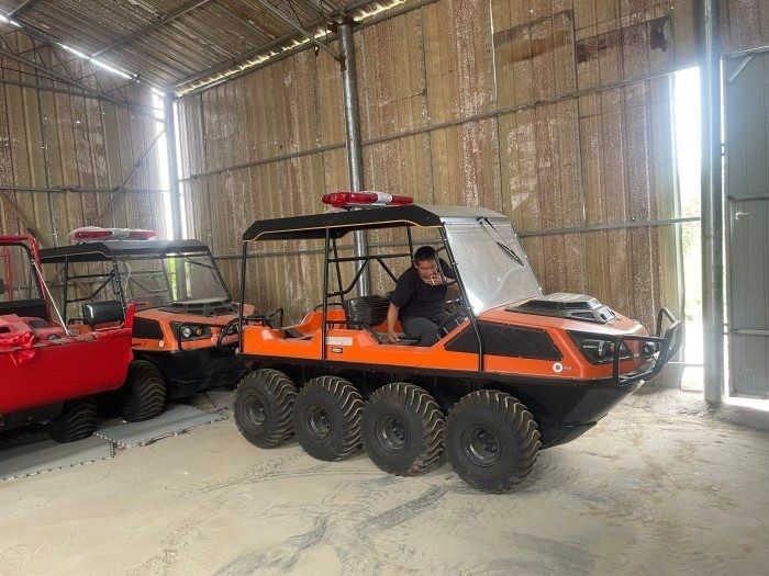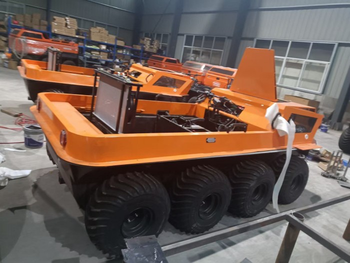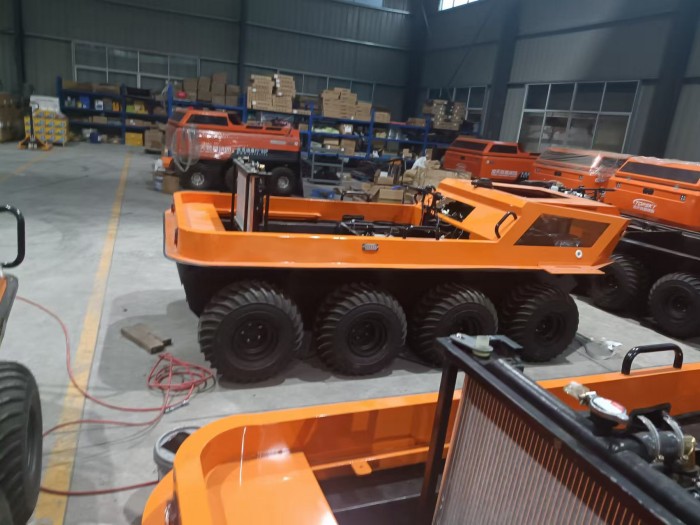 在復雜惡劣的地形條件和自然環境下,水陸兩棲全地形車可以讓搜救隊員和攜帶的救援裝備快速到達救援現場,減少徒步帶來提供消耗,完成最后一公里最好五分鐘緊急救援任務。水陸兩棲全地形車可配備點到絞盤、救援擔架組件、探照燈、警示燈、警報器、脫鉤、破拆工具等裝備, 給救援團隊提供救援保障,更安全的解救傷員和疏散群眾。