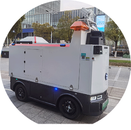 無人安防車是一款具備城市主干道完全無人駕駛混行能力,多傳感器融合感知的設備,搭載AI云臺和伴飛無人機,可通過人臉車牌識別,實時畫面快速取證,實現精準執法。